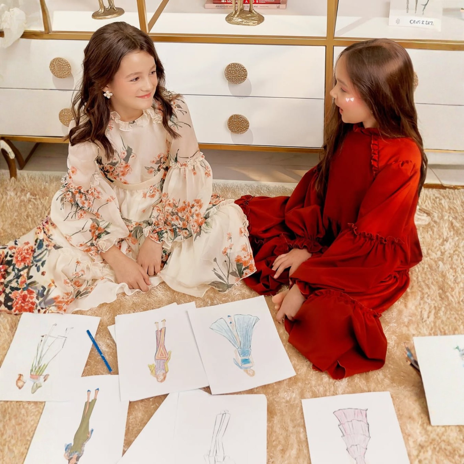 Elsava is about evolution, meaning, and legacy, encapsulating the essence and nomadic narratives of Elnura's homeland: clothes crafted with care beyond fabric, with stories and treasured moments woven through every fibre and thread, every stitch, and fold; each piece becomes part of the journey of the children and women who adorn Elsava, where stories of their growth, explorations, values and the wisdom they gather along the way are shared under one sky, intertwined in garments that become heritage pieces to be cherished and lovingly passed on across generations.